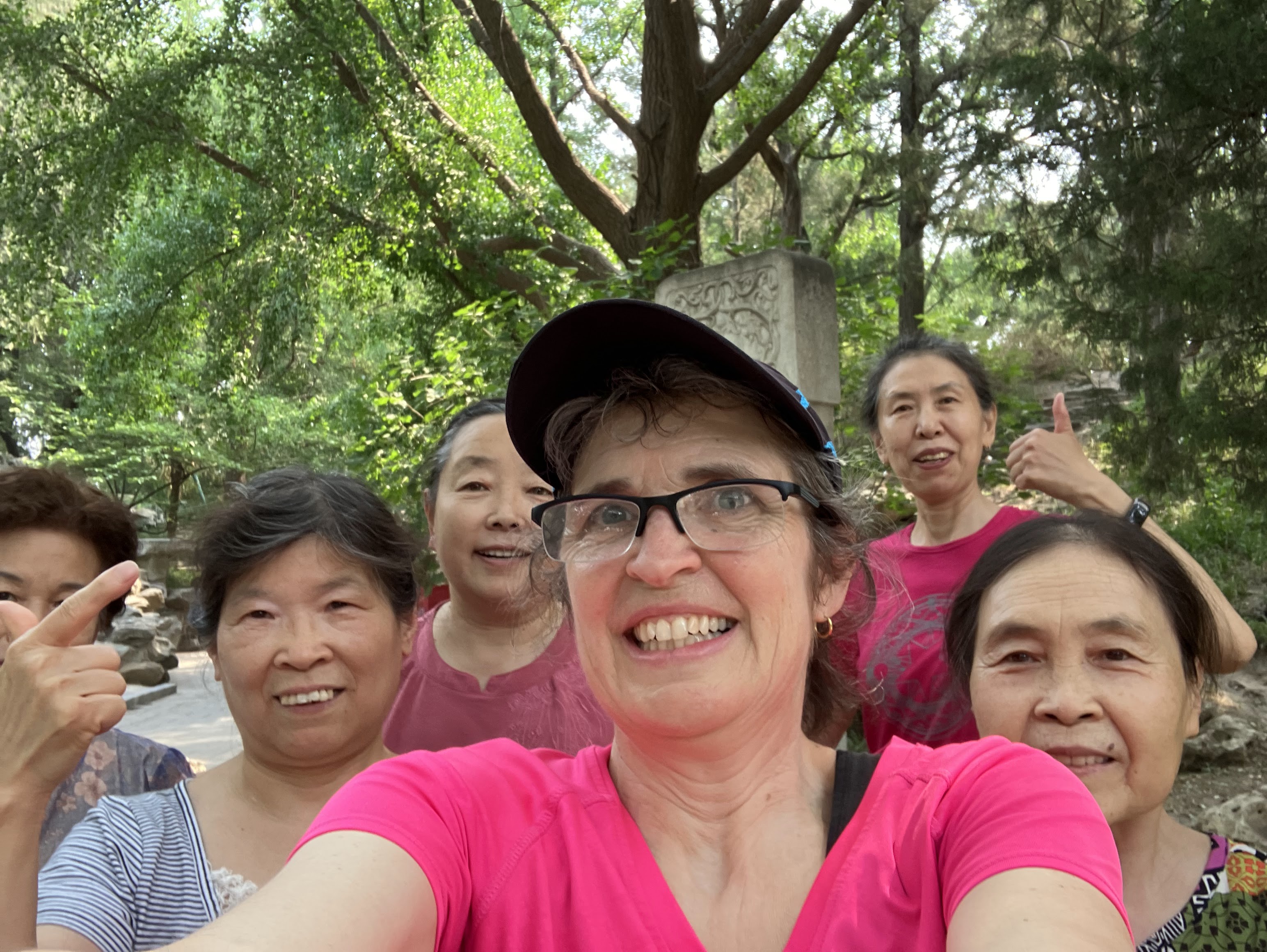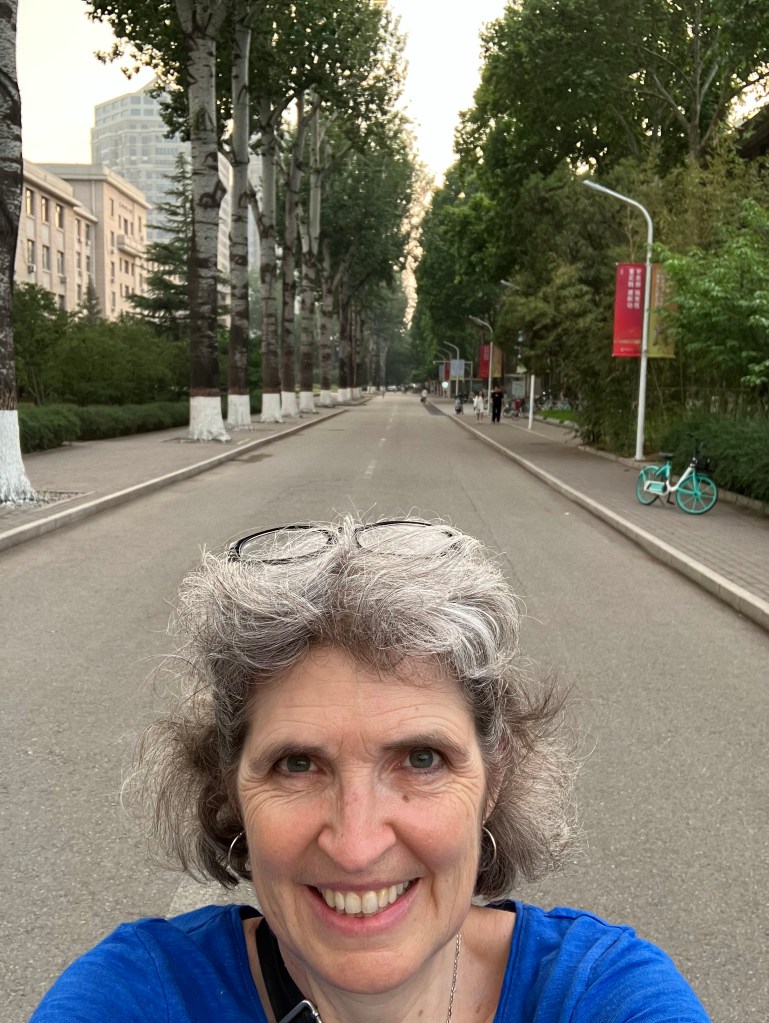 I struck up a “conversation” with the woman next to me (using Google Translate) and I told her I was a visiting professor from Cornell teaching at China Agricultural University. She told me about her group: they are all retired and know each other from work. They said they are doctors, nurses and staff members. It was nice to be welcomed into their group, even if it was just for a short while. We took a selfie together when it was time for me to go.