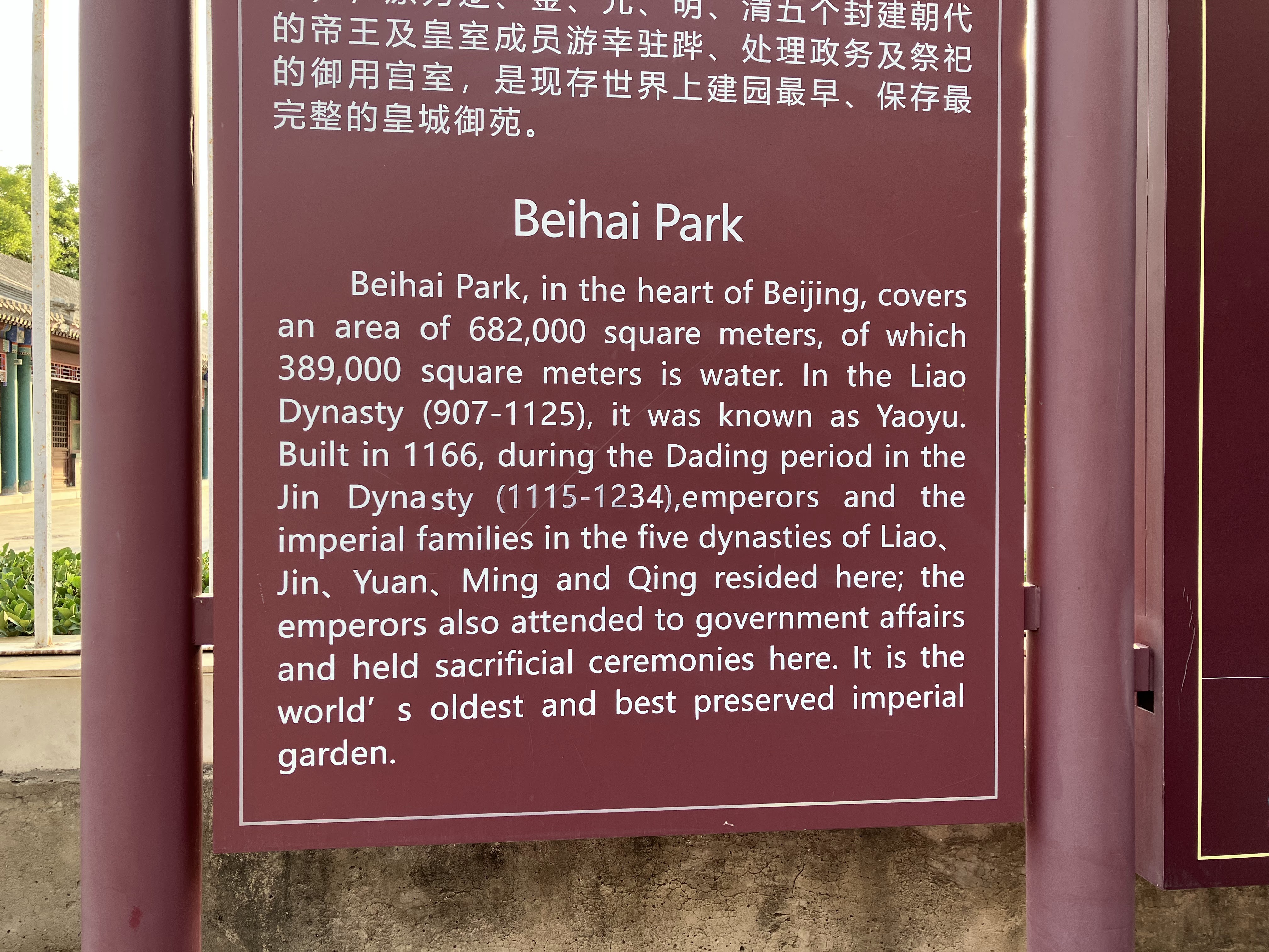 Anyways, I took this bike and rode to Beihai park. That’s the park that I went to a few weeks ago with that youngster friend, Jingyao, who loves soccer. I enjoyed the park so much, I decided to go back on my own. I rode the bike 6 miles into downtown and it was quite a nice ride, and of course, I rode back to campus too. Beijing is very bikeable. The weather could have been better, but it wasn’t terrible. (It was 83 degrees when I started at 8 am and 93 degrees by the time I got back at 11 am).