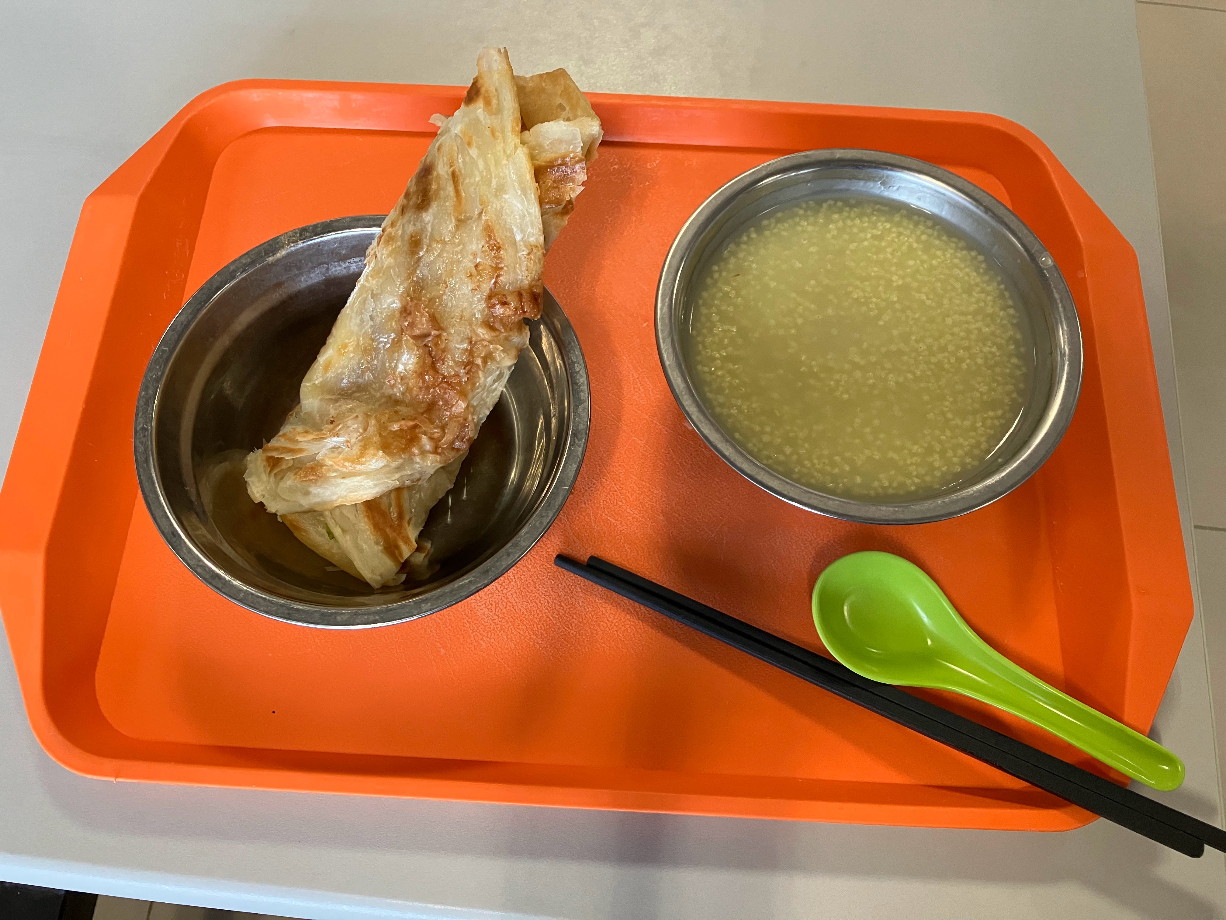 Discovery of various new foods was the theme of last week. For instance, last week I ordered my breakfast with the usual point-and-hoot method. It was a rolled up flatbread, but with a something inside that I couldn’t see. The bread part was thicker than a tortilla or a wrap, and it was flaky-looking. The fun part was that I had no idea what was inside. The question was: What will I find when I open it up!? It was a hot dog and a fried egg with a piece of lettuce. It was quite yummy!