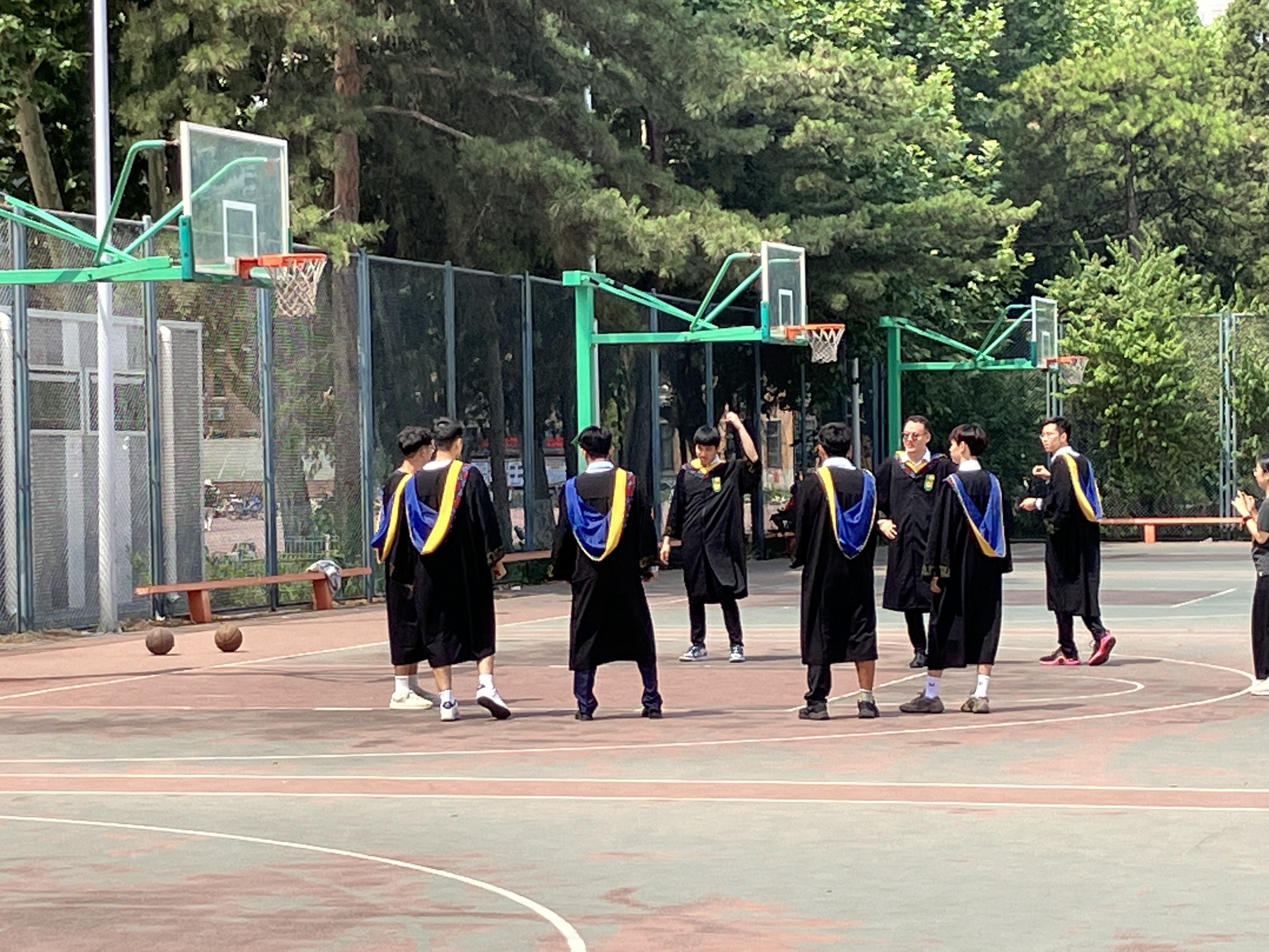 Back on campus, I saw some more interesting sights: Graduates playing basketball in their graduation gowns in full sunlight when it was 93 degrees. They seemed to be having a lot of fun and didn’t appear to mind the heat.
