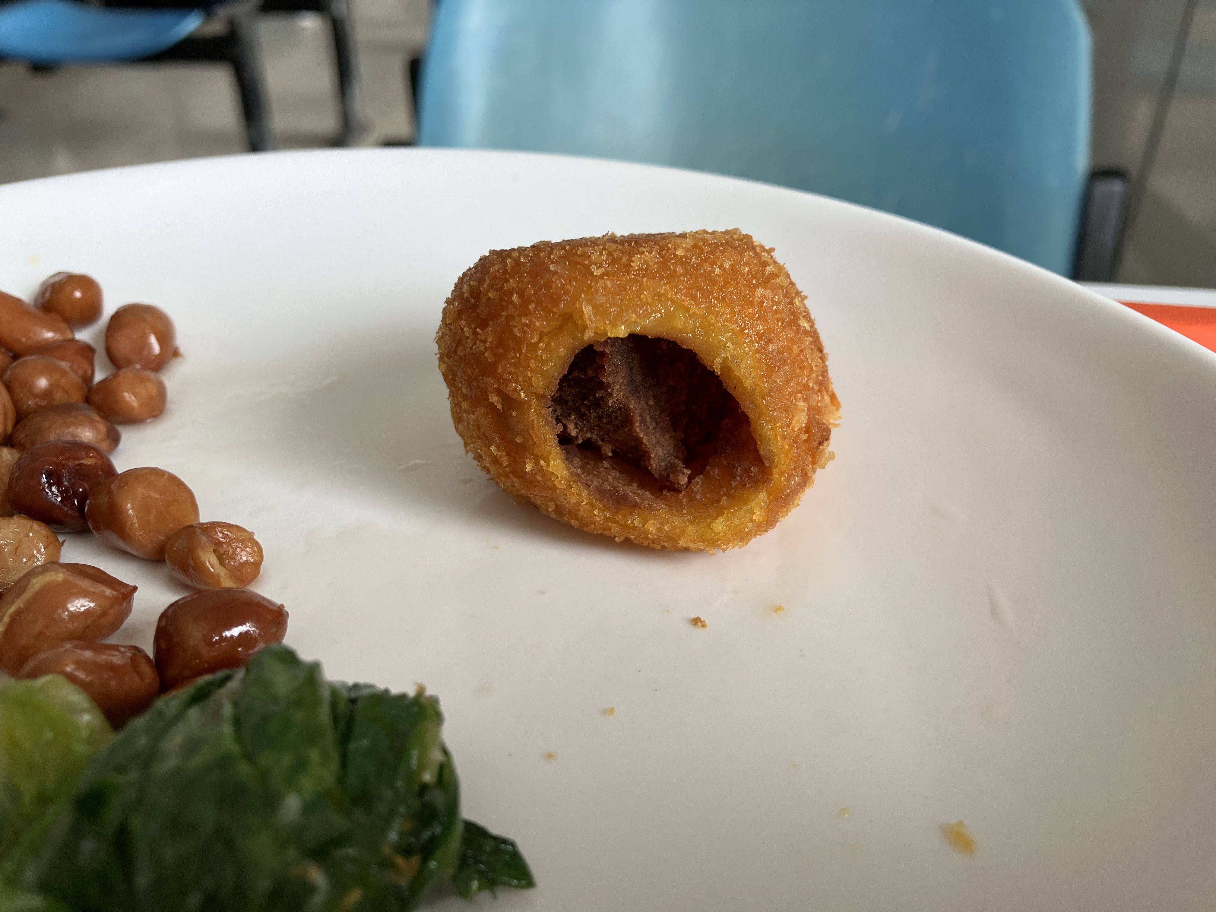 Recently for lunch, I chose a round fried ball of something. The outside was covered in brown flakes. It’s kind of neat to sample something and know that there would be a surprise on the inside. I discovered that it had sweet bean paste on the inside. Again, very yummy.