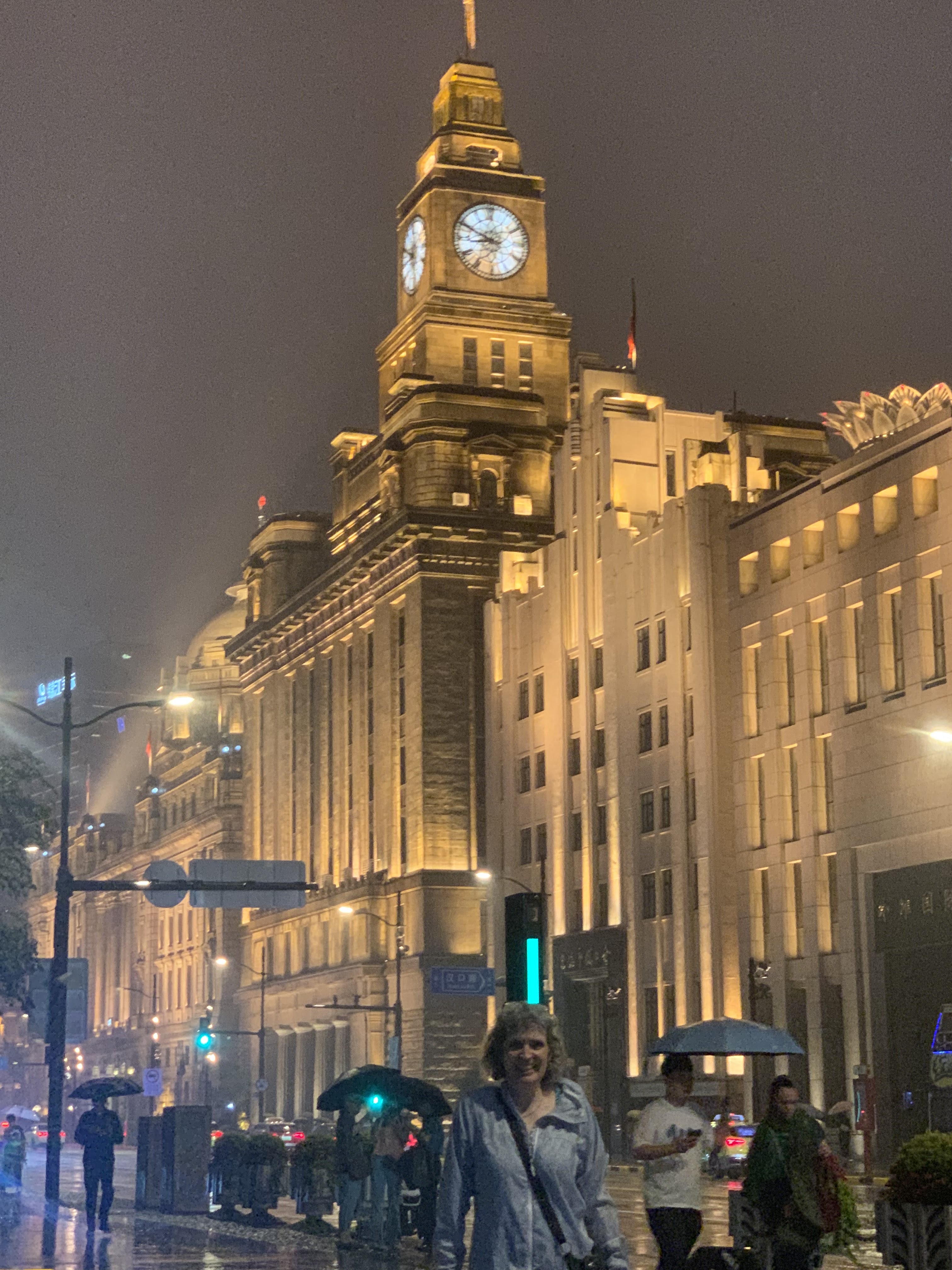 The one thing that I forgot when I did my trip planning is that the monsoon season reaches into Shanghai. Thus on our first evening stroll through the city, we walked in the monsoon rains. It wasn’t a downpour, but it was a steady rain and as you can see in the photo above, we got soaked despite our valiant use of umbrellas.